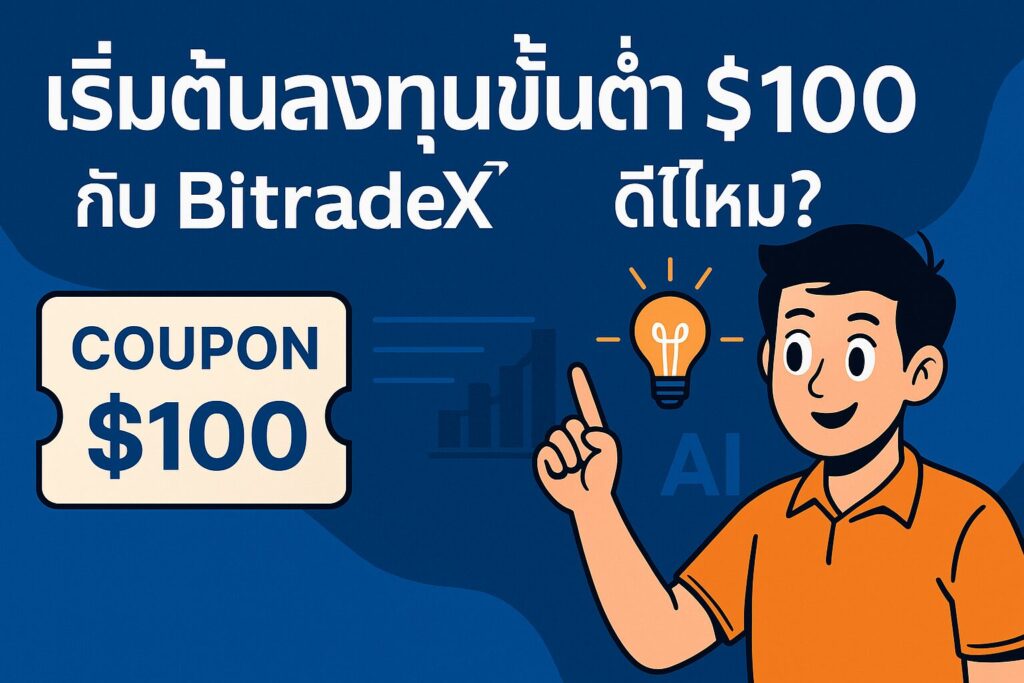 การเริ่มต้นลงทุนขั้นต่ำ $100 กับ BitradeX ถือว่าเป็นทางเลือกที่ดีสำหรับมือใหม่ เพราะช่วยให้ เรียนรู้ระบบจริง ลดความเสี่ยง และสร้างวินัย โดยไม่ต้องใช้เงินก้อนใหญ่